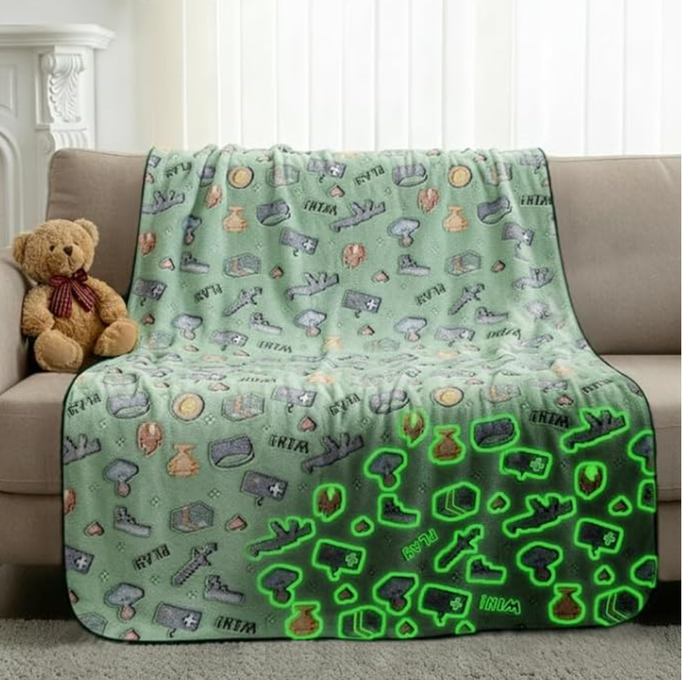 ¡Lleva la aventura de tus videojuegos favoritos a la hora de dormir! Esta manta ultra suave de ALLINCOZY presenta iconos inspirados en el mundo gamer (pociones, monedas y herramientas) que brillan mágicamente en la oscuridad. Fabricada en vellón de franela premium, es el complemento perfecto para crear una atmósfera épica en cualquier habitación.